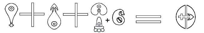 weibliches Kreuz und männlicher (Feuer -) Pfeil.